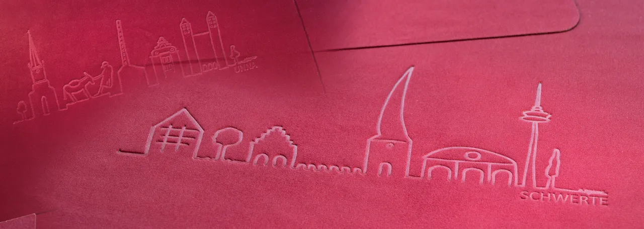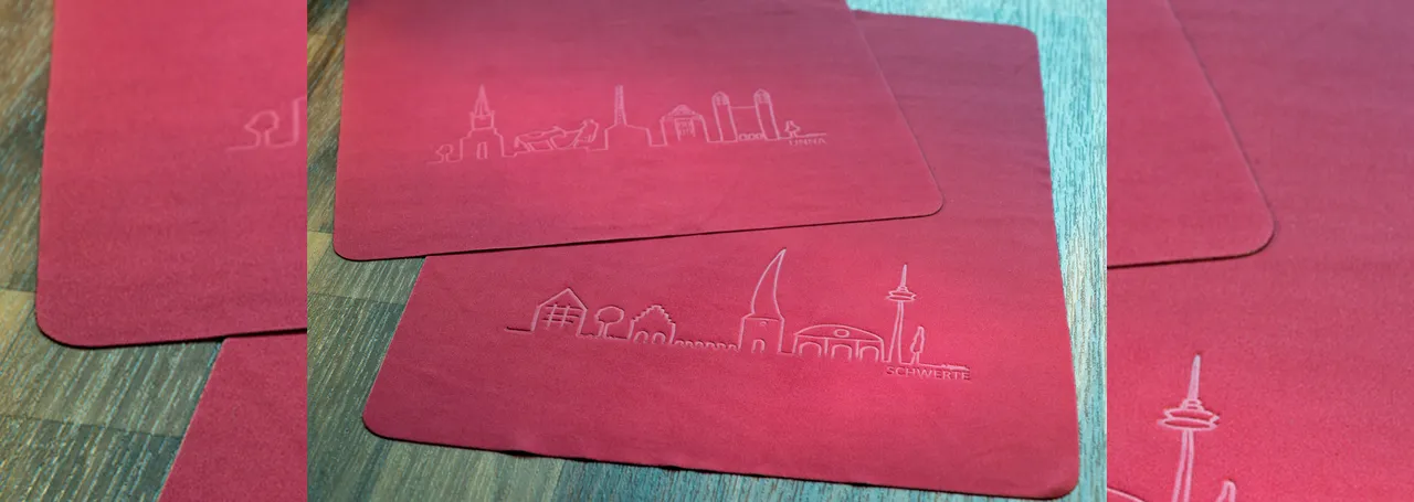 Brillenputztuch mit den Skylines von Schwerte oder Unna.